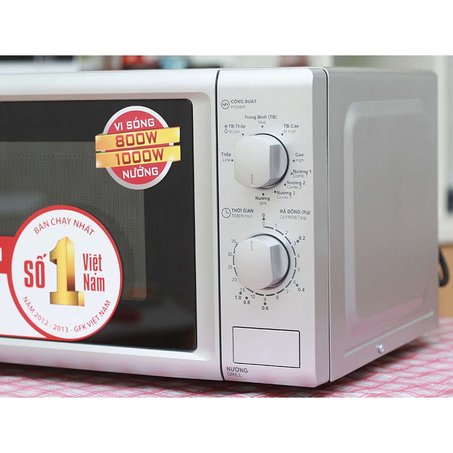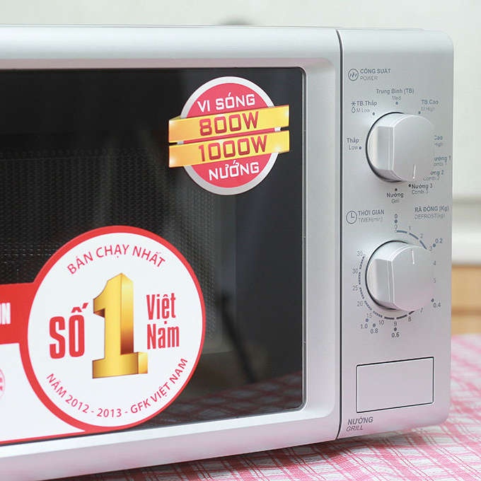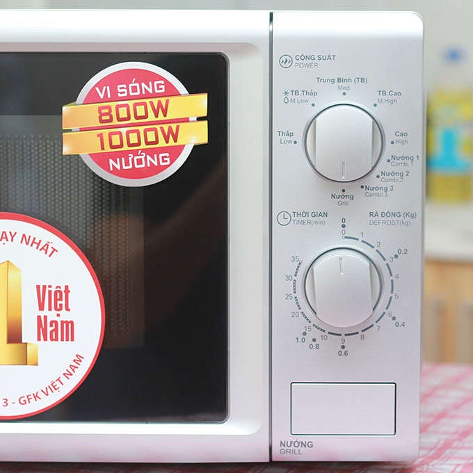 - Công suất vi sóng 800W, nướng 1000W, nấu nướng nhanh