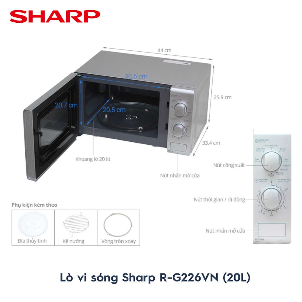 Giới thiệu Lò vi sóng có nướng Sharp R-G226VN-S dung tích 20 lít, bảo hành 12 tháng