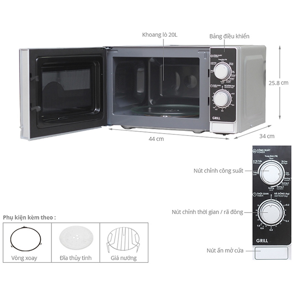 Thiết Bị Điện Gia Dụng > Đồ gia dụng nhà bếp > Lò vi sóng || [Mã ELHADEV giảm 4% đơn 300K] Lò Vi Sóng Có Nướng Sharp R-G223VN-SM 20 LítCòn hàng