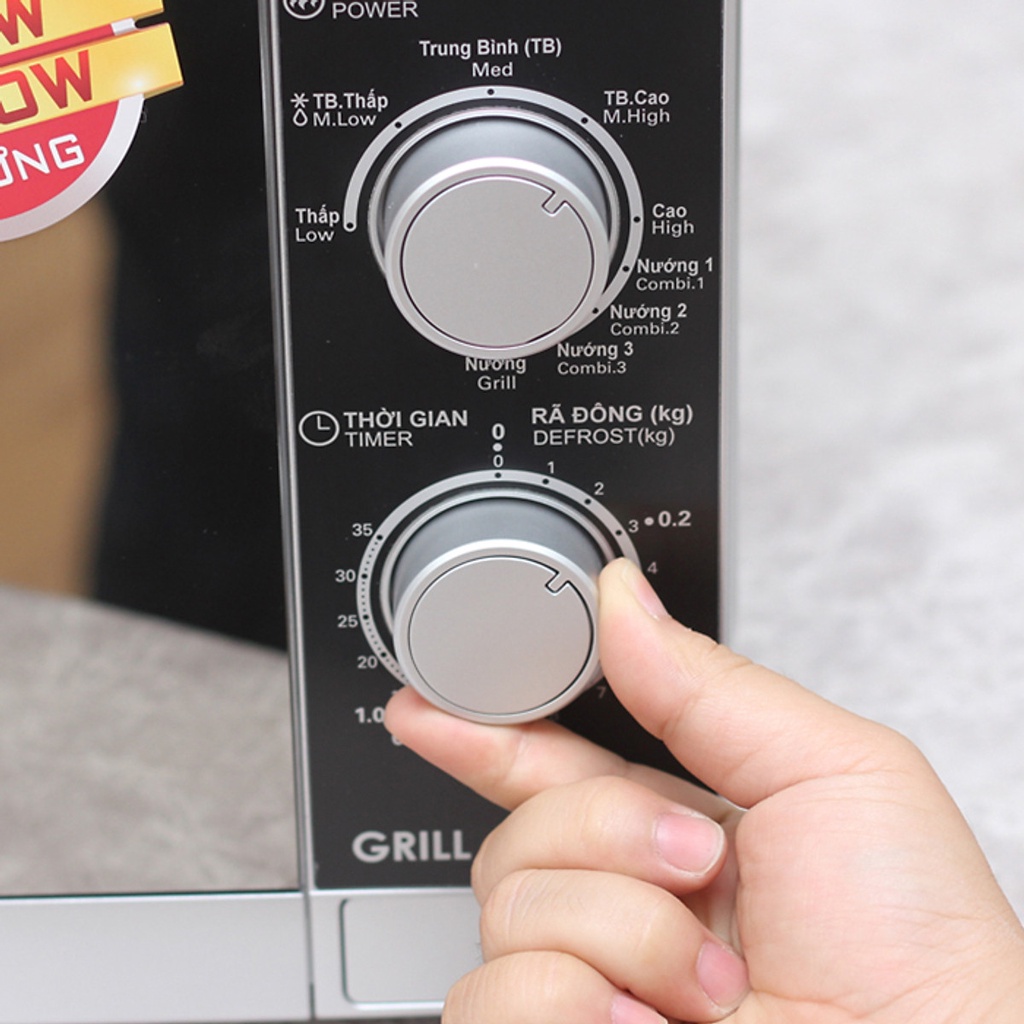 Chế độ hẹn giờ thông minh cho phép người dùng tùy chọn thời gian nấu phù hợp với món ăn cần chế biến, tối đa đến 35 phút. Chức năng nướng kết hợp còn cài đặt 3 mức công suất, cho phép bạn tùy chỉnh thích hợp với các món ăn mình nấu để hương vị thơm ngon, bổ dưỡng hơn.