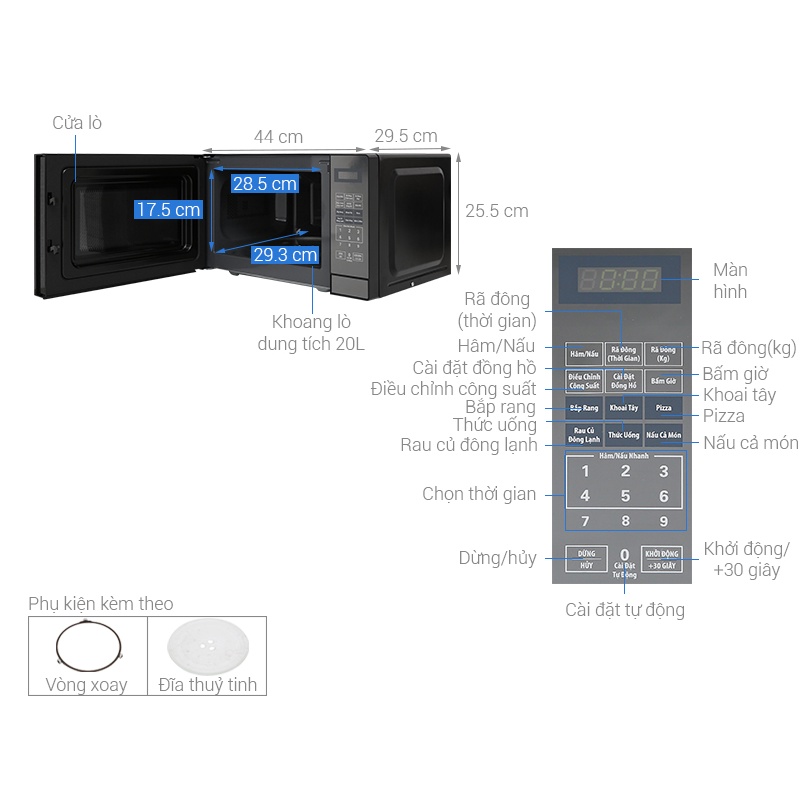 Tiện ích: Hẹn giờ lên tới 99 phútKhoang lò có đènKhóa trẻ em
