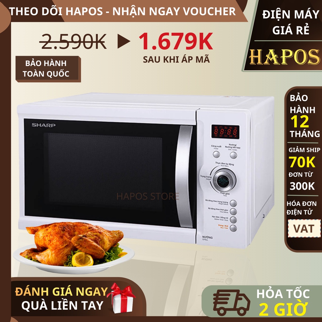Thiết Bị Điện Gia Dụng > Đồ gia dụng nhà bếp > Lò vi sóng || Lò vi sóng điện tử Sharp R-G371VN-W có nướng 23 lít viba 800W nướng 1000W - HAPOSCòn hàng