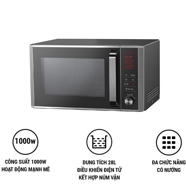 Lò vi sóng điện tử có công suất lớn với các chế độ nhiệt linh hoạt, giúp bạn dễ dàng làm nóng thức ăn, giữ nguyên được dinh dưỡng và hương vị món ăn. Ở nhiệt độ cao, bạn còn có thể dễ dàng chế biến các món ăn khác: nướng bánh, mì, phở, miến… Hay dễ dàng giã đông thực phẩm với các đồ đông lạnh, tiết kiệm thời gian chờ đợi.