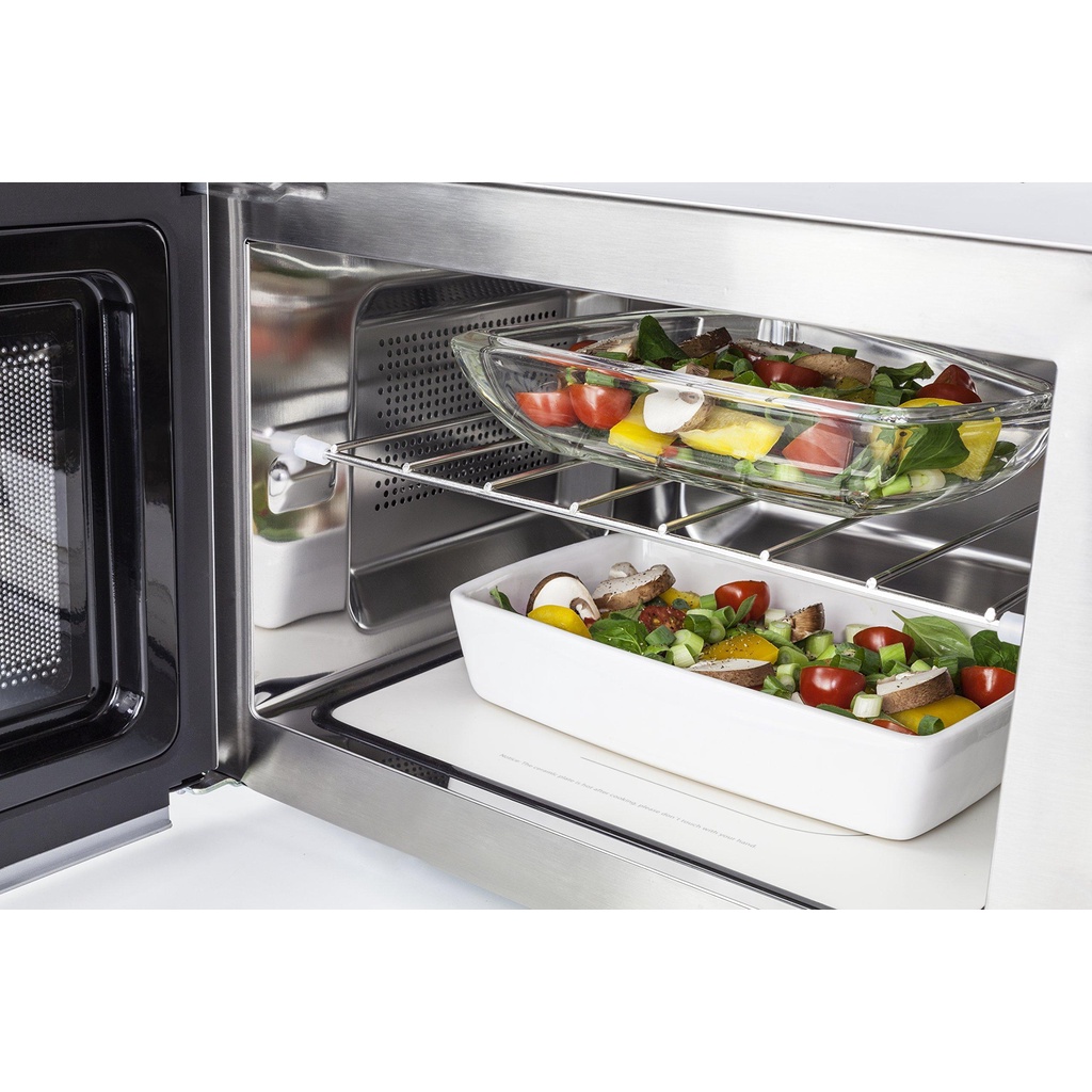 - Giá đỡ với 2 cấp độ: Lò vi sóng Caso trang bị thêm giá trượt giúp việc rã đông và nấu đồng thời nhanh chóng và thuận lợi với 2 cấp độ nấu đơn gian.