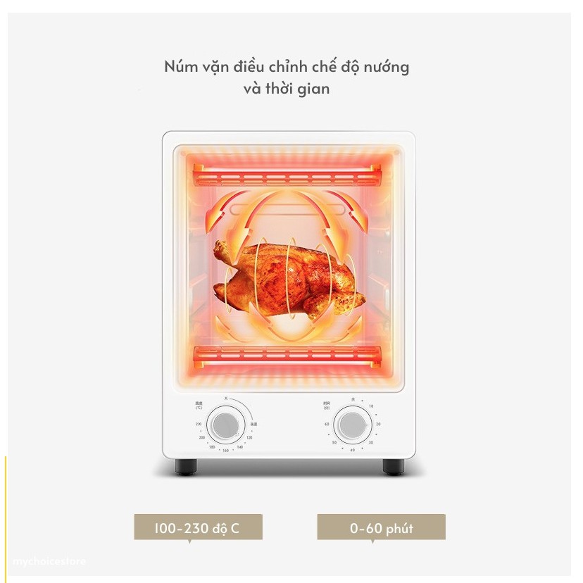 * - Núm vặn điều chỉnh nhiệt độ và thời gian nướng dễ dàng sử dụng