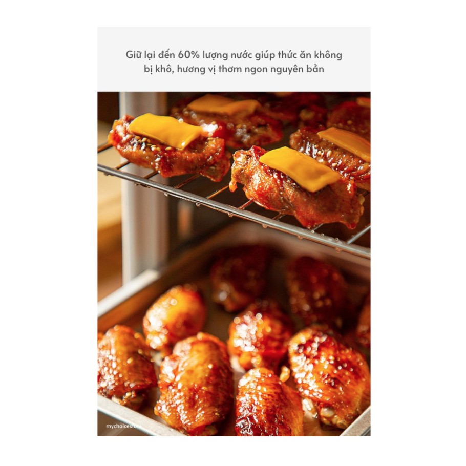 * - Giữ lại đến 60% lượng nước nên món ăn sẽ không bị khô sau khi nướng và vẫn lưu lại hương vị thơm ngon