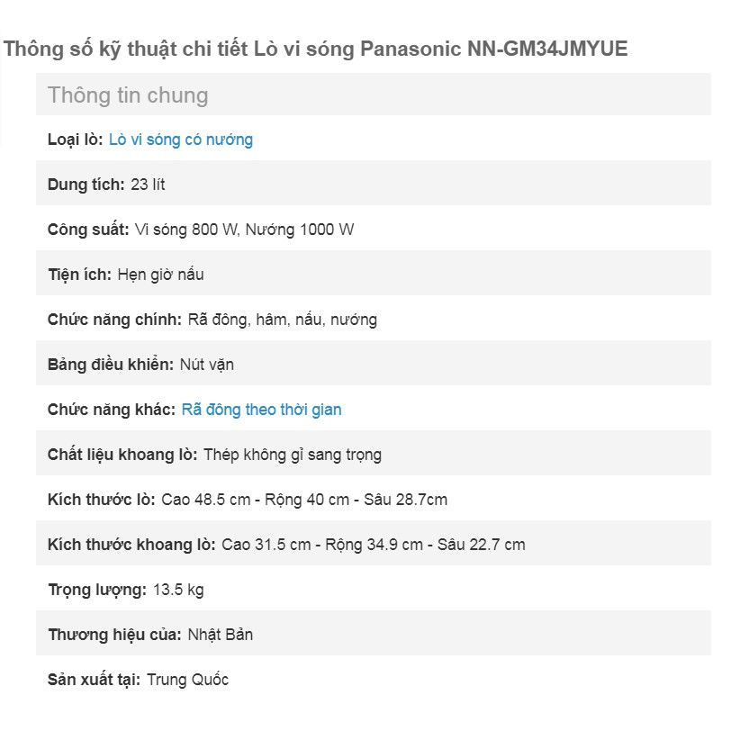 Giới thiệu [Mã ELHADEV giảm 4% đơn 300K] Lò vi sóng Panasonic NN-GM34JMYUE