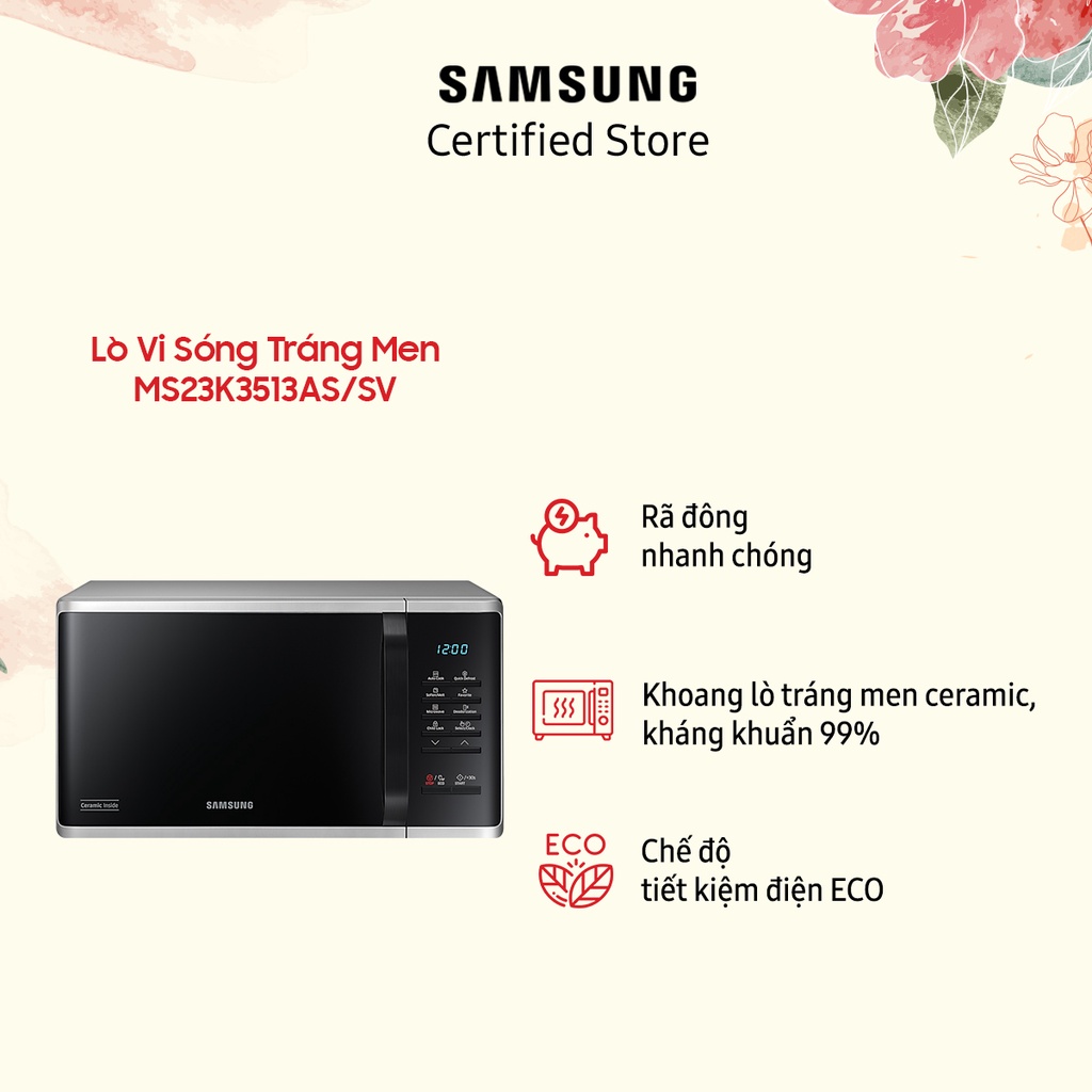 Thiết Bị Điện Gia Dụng > Đồ gia dụng nhà bếp > Lò vi sóng || Lò vi sóng Samsung Dòng Vi Sóng (MS23K3513AS) | 23L | 1150W | Rã đông nhanh | Khoang lò gốm | Nhập Malaysia | Chính hãngCòn hàng