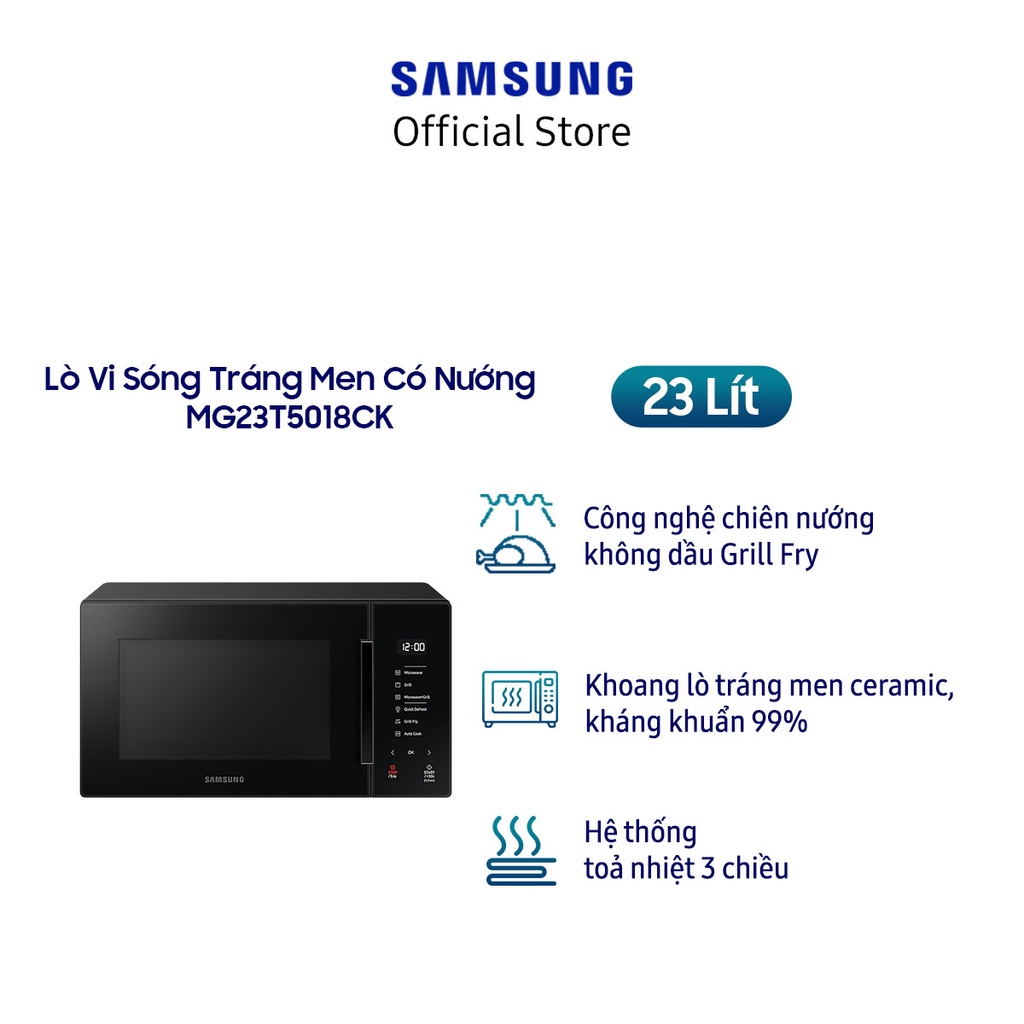 Giới thiệu [Mã ELSAM5 giảm 10% đơn 500K] Lò Vi Sóng Samsung Tráng Men Dòng Nướng 23L - Đen (MG23T5018CK)