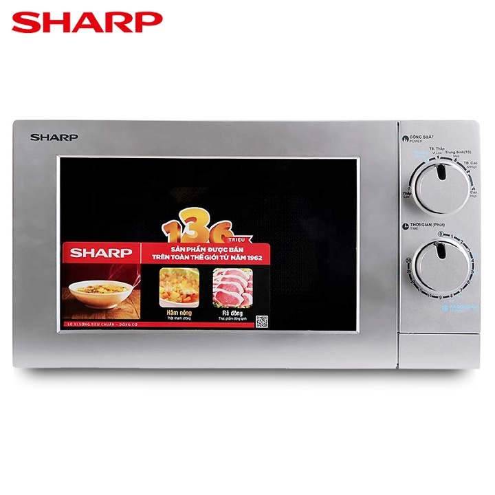 Lò vi sóng Sharp 20 lít R-207VN-SLLò vi sóng Sharp R-207VN-SL, Dung tích 20 Lít, Công suất 700W với 3 chức năng Nấu, Hâm và Rã đông thực phẩm không còn là mặt hàng “xa xỉ” đối với các gia đình Việt Nam hiện nay. Với những công dụng nấu chín thức ăn phong phú, lò vi sóng SHARP trở thành những thiết bị nấu nướng được ưa chuộng nhất. Lò vi sóng Sharp đơn giản dễ sử dụng với bảng điều khiển bằng nút vặn, có tiếng việt hướng dẫn phù hợp với những gia đình có trẻ em hoặc người lớn tuổi đều có thể sử dụng được.