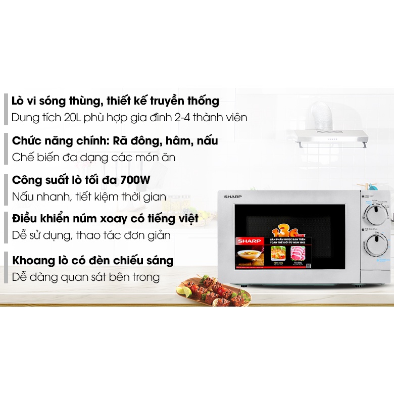 Thiết Bị Điện Gia Dụng > Đồ gia dụng nhà bếp > Lò vi sóng || [Mã 44ELSALE2 giảm 7% đơn 300K] Lò vi sóng Sharp 20 lít R-202VN-S / R-209VN-SK - Bảo hành tại hãng 12 tháng toàn quốcCòn hàng