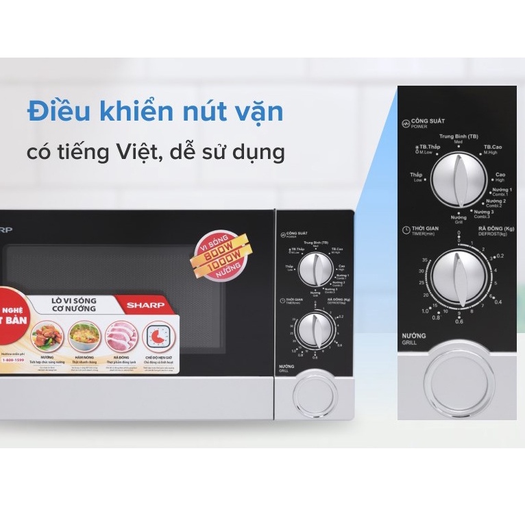 Giới thiệu [Mã ELHADEV giảm 4% đơn 300K] Lò vi sóng cơ Sharp 23 lít có nướng viba 800W nướng 1000W núm xoay cơ - HAPOS