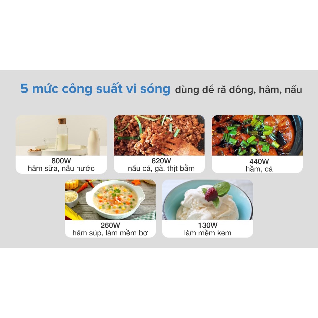 - Chức năng chính: Rã đông, hâm, nấu, nướng