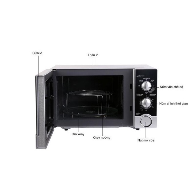 Lò vi sóng có 5 mức công suất khác nhau, trong đó công suất vi sóng là 800W và công suất nướng là 1000W giúp bạn hâm nóng và nướng chín thức ăn một cách nhanh chóng, dễ dàng.