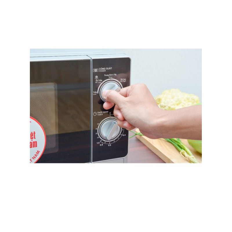 Cụm điều khiển vặn xoay có tiếng Việt chỉ dẫn trên từng nút, giúp hạn chế thao tác sai. Cho nên lò vi sóng Sharp R-205VN(S) hoàn toàn thân thiện với người sử dụng cho dù có là người lớn tuổi