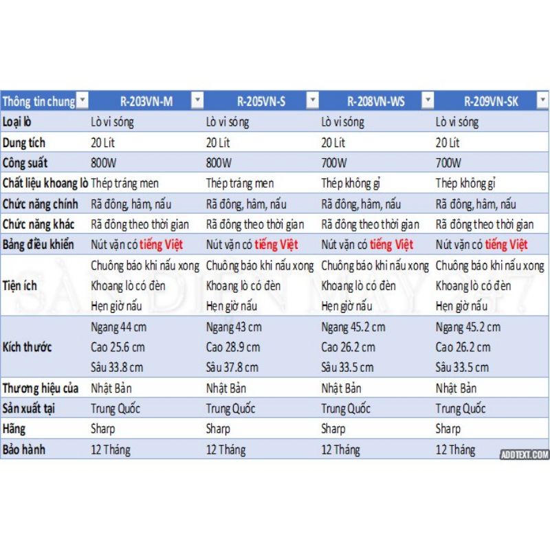 LÒ VI SÓNG SHARP R - 205VN ( S ) và R - 208VN (WS )