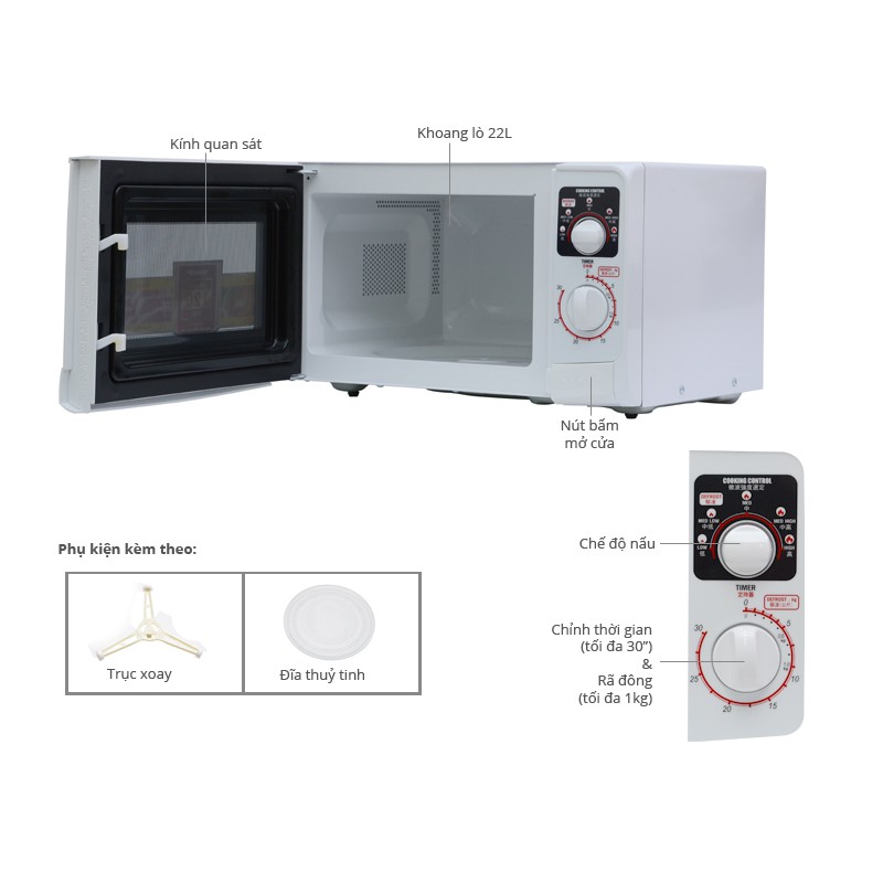 Lò vi sóng có 5 mức công suất và thời gian hẹn giờ nấu ăn lên tới 99 phút, giúp bạn rảnh tay thực hiện nhiều công việc khác trong khi vẫn nấu được những bữa ăn ngon cho gia đình. Chức năng tự ngắt sau khi hết giờ hẹn còn giúp bạn tiết kiệm lượng điện năng sử dụng.