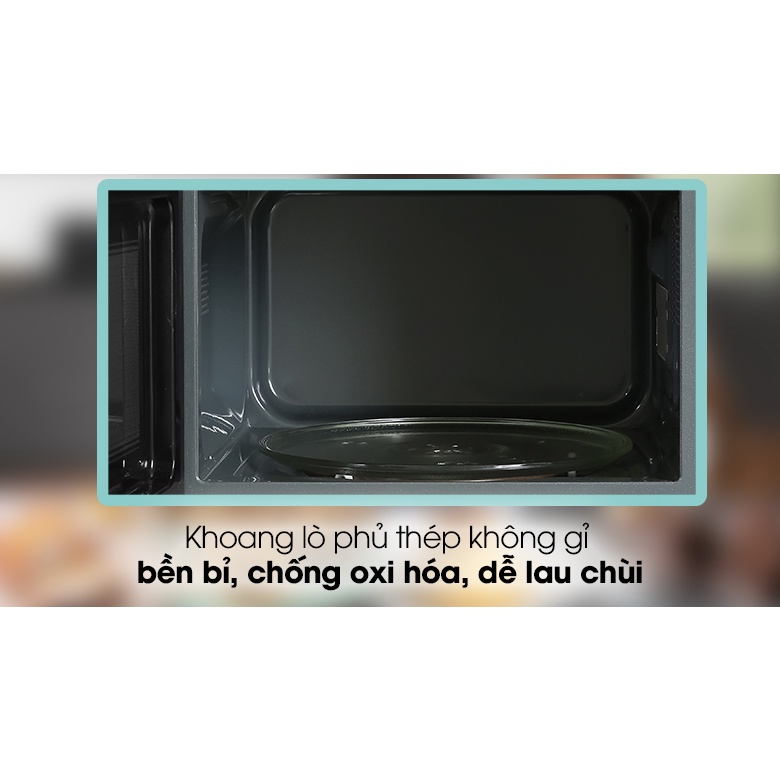 Khoang lò dung tích 23 lít, có đĩa xoay thủy tinh