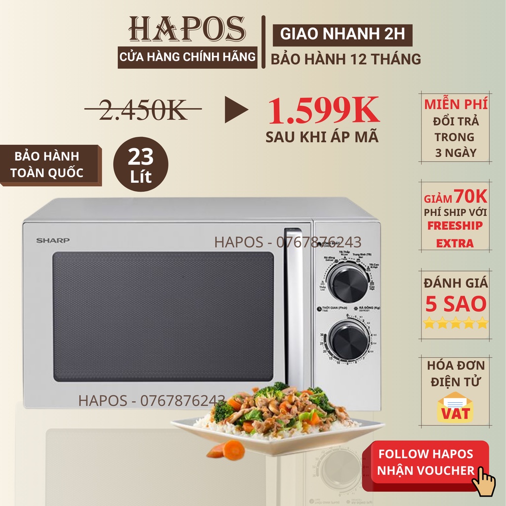 [Mã ELHADEV giảm 4% đơn 300K] Lò Vi Sóng Sharp R-32A2VN-S 23 Lít 900W