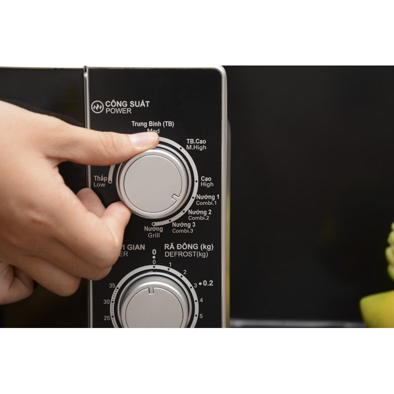 Lò vi sóng sử dụng bảng điều khiển nút vặn bằng tiếng Việt dễ thao tác.