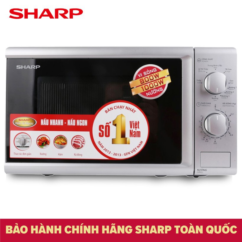 Lò vi sóng Sharp R-G226VN-S Dòng Vi sóng có Nướng 2 trong 1, Dung tích 20 Lít, Công suất vi sóng 800W, Nướng 1000W với 4 chức năng Nướng, Nấu, Hâm và Rã đông thực phẩm kết hợp mẫu Lò Vi ba bán chạy nhất tại hệ thống siêu thị và cửa hàng gia dụng trên toàn quốc