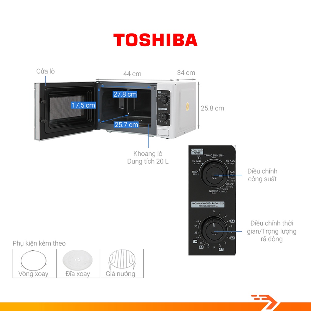 Lò Vi Sóng Toshiba ER-SGM20(S1)VN 20 Lít - Bảo Hành Chính HãngTHÔNG SỐ KỸ THUẬT: