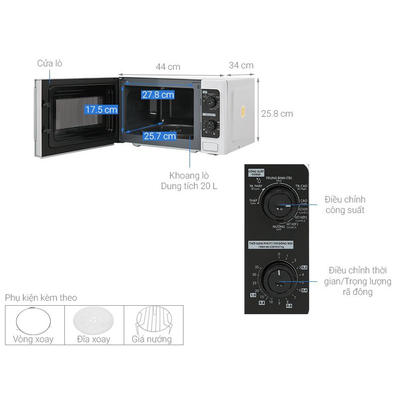 Loại lò:Lò vi sóng có nướngDung tích:20 lít