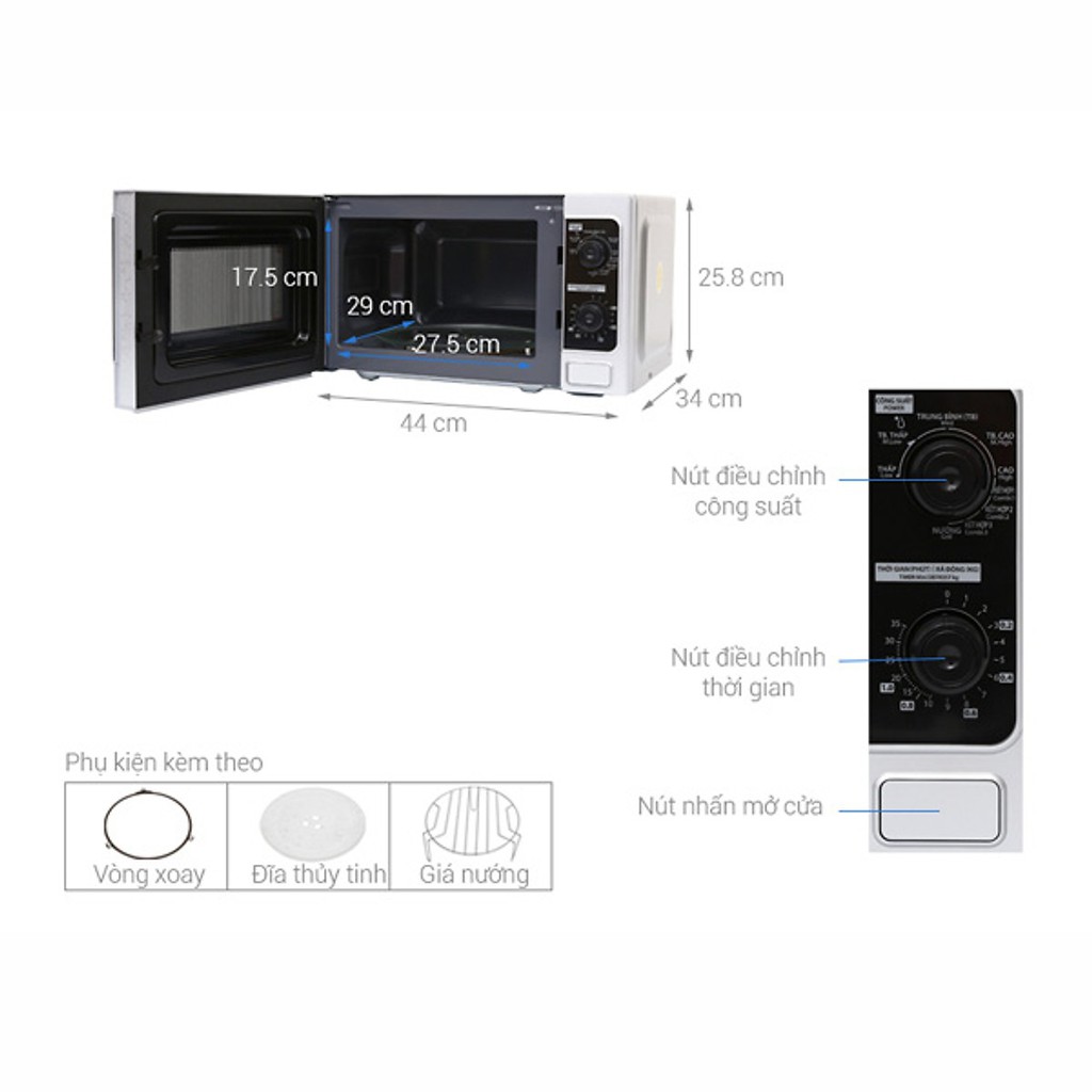 - 3 chức năng: nấu, hâm nóng và rã đông với 5 mức công suất tùy chỉnh, tối đa là 800 W giúp nấu ăn hiệu quả, tiết kiệm nhiều thời gian.