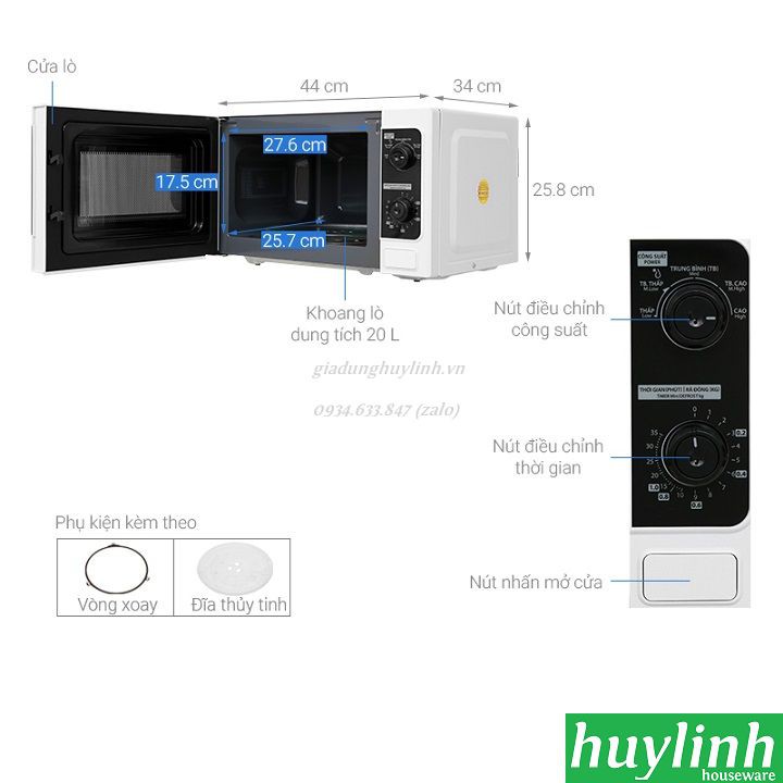 - Loại lò: Lò vi sóng không nướng