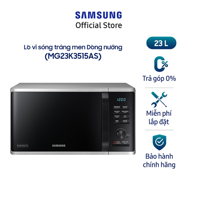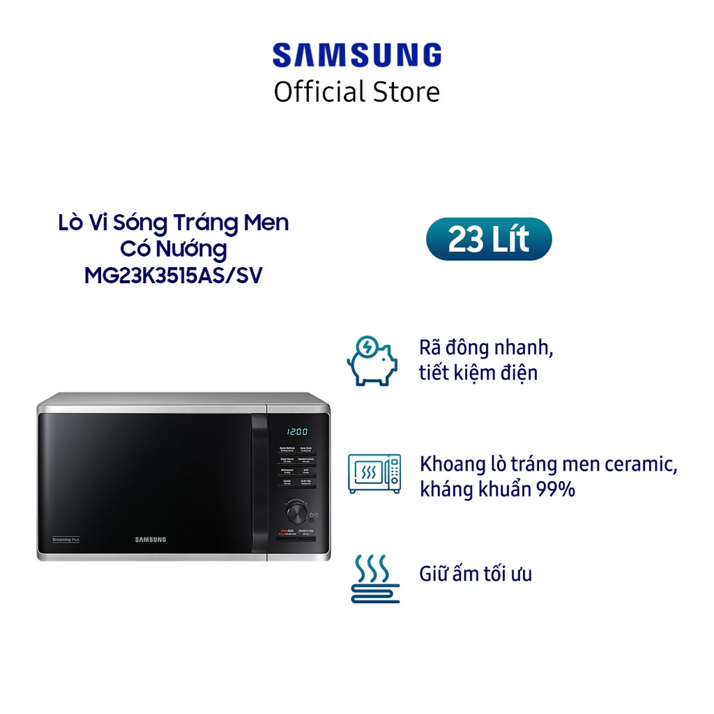 Thiết Bị Điện Gia Dụng > Đồ gia dụng nhà bếp > Lò vi sóng || [Mã ELSS500 giảm 10% đơn 500K] Lò Vi Sóng Tráng Men Có Nướng Samsung MG23K3515AS/SV(23 lít)Còn hàng