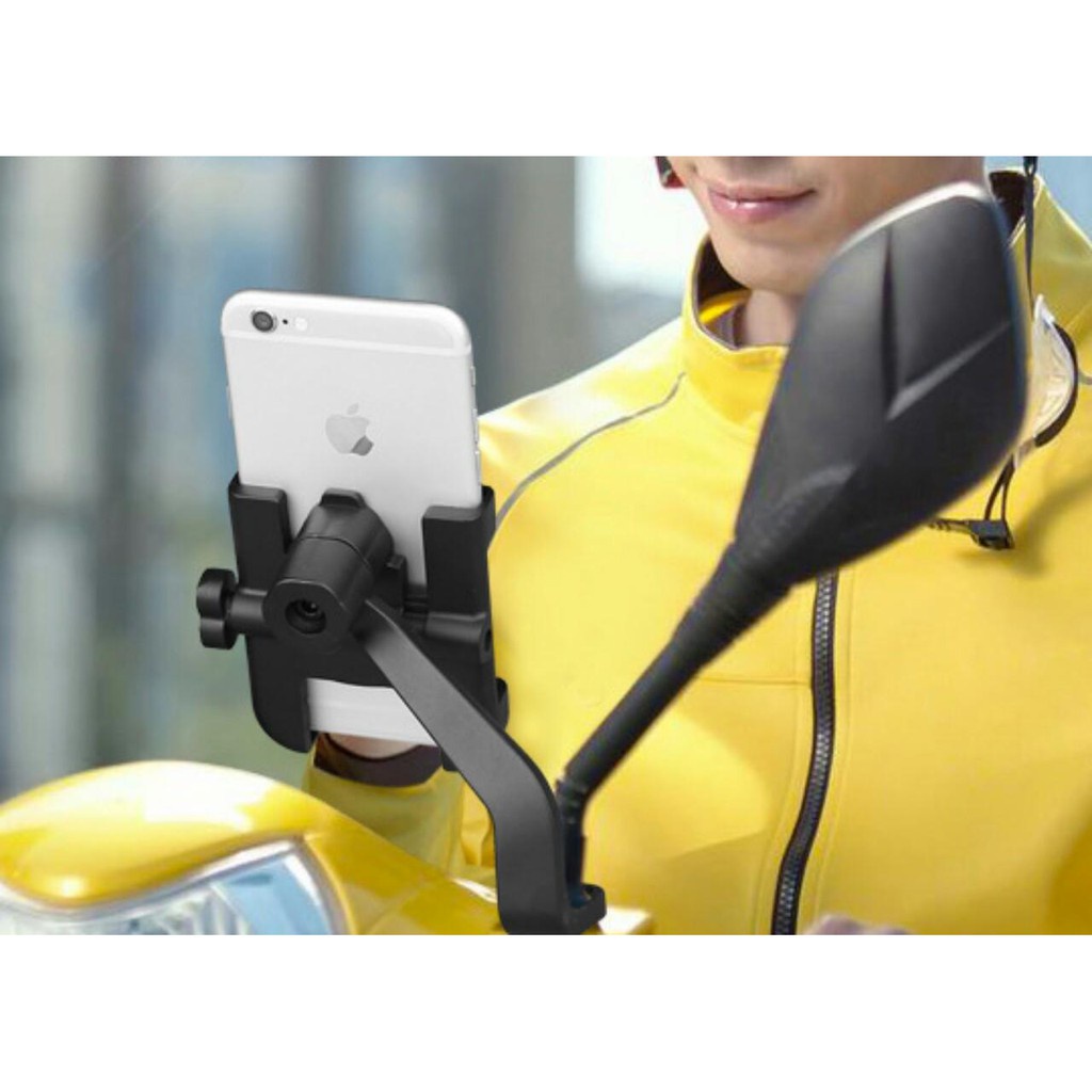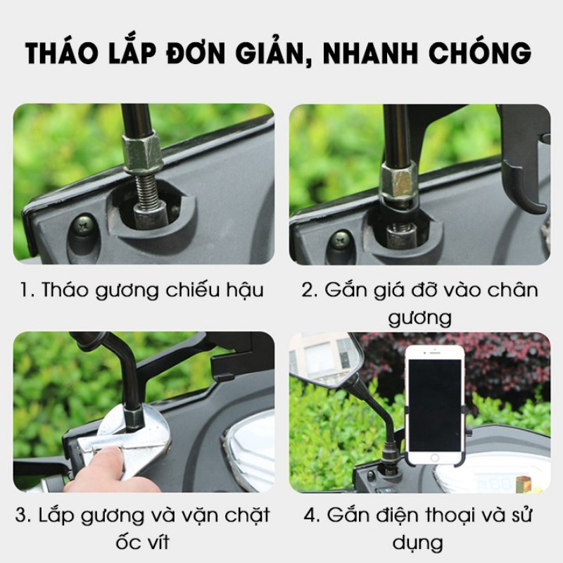 Đế gắn điện thoại trên xe máy được sử dụng để kẹp vào phần ghi đông phía trước xe, thuận thiện cho việc sử dụng mọi lúc mọi nơi.