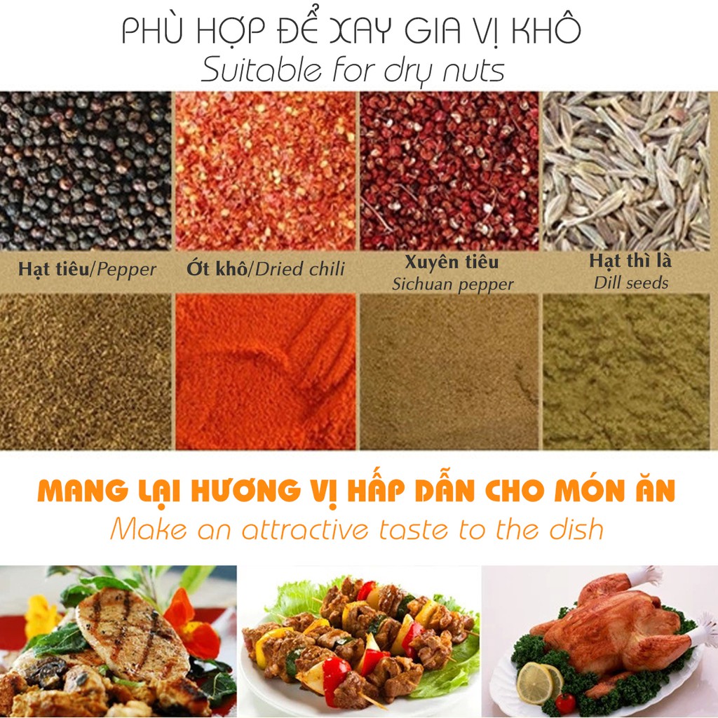 Phù hợp sử dụng để xay hạt tiêu khô, ớt khô, hạt gia vị khô...