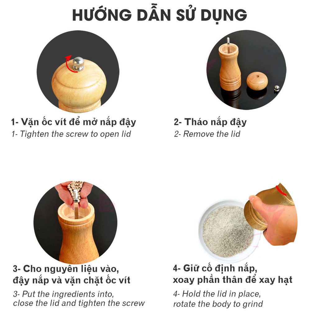Nhà cửa & Đời sống > Dụng cụ nhà bếp > Phới đánh trứng || Lọ xay tiêu cao cấp bằng gỗ sồi, dụng cụ xay tiêu cầm tayCòn hàng