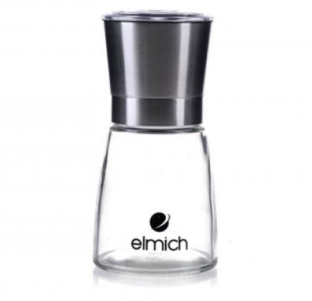 - Bình chứa tiêu được làm từ chất liệu thủy tinh cao cấp, có in thương hiệu Elmich đẹp mắt, sang trọng. Ngoài ra, với chất liệu thủy tinh trong suốt, bạn dễ dàng quan sát trong quá trình xay.