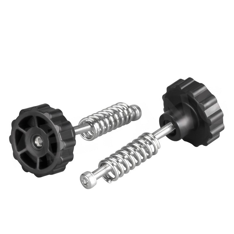 1 Bộ gồm: 1 ốc m3 dài 30mm , 1 lò xo, 1 tán núm vặn bằng nhựa kích cỡ lớn (đường kính 23mm)