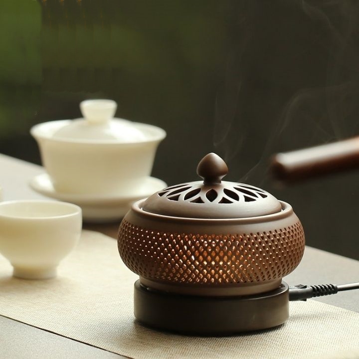 Lò xông - Lư xông trầm điện có hẹn giờ chỉnh nhiệt bằng gốm chịu nhiệt cao cấp hình lưới