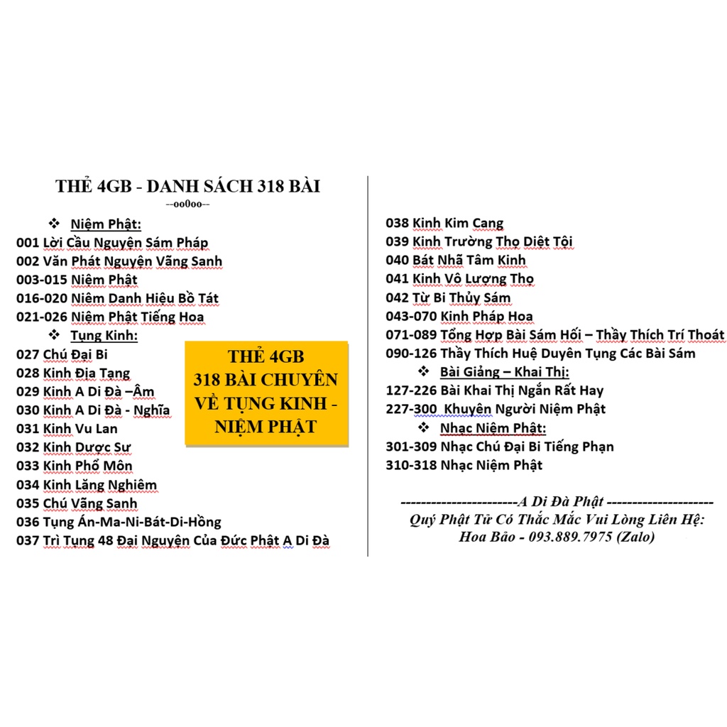 -Thẻ 4gb : 318 bài tụng kinh niệm Phật