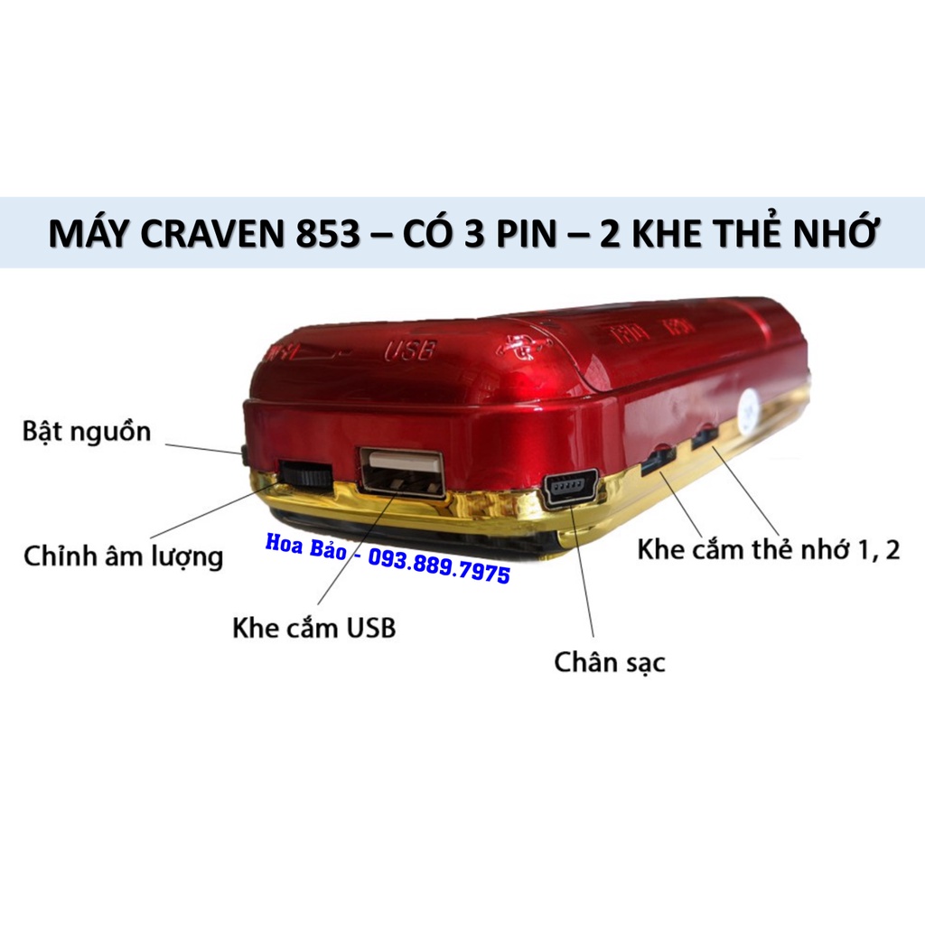 Thiết Bị Âm Thanh > Máy nghe nhạc > MP3 & MP4 || ✅Loa 3 Pin ✅ 2 Khe Thẻ Nhớ, Máy Craven 853 - Loa Nghe Pháp, Nghe Nhạc, Loa Học Tiếng Anh/FM/USB - SIÊU BỀNCòn hàng
