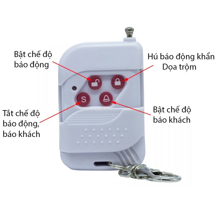 Với bộ kit này loa báo động được sử dụng như một bộ trung tâm, nó sẽ học lệnh để ghép nối với tay điều khiển giúp bạn chủ động điều khiển bật tắt báo động từ xa, nhấn báo động khẩn cấp để dọa trộm nếu muốn. Có thể học lệnh từ các cảm biến không dây phát sóng RF315 như: cảm biến chuyển động hồng ngoại, cảm biến của mở, cảm biến rung, cảm biến tràn nước, cảm biến khói, cảm biến mở cửa cuốn... từ đó tùy vào cảm biến ghép nối mà loa sẽ phát ra báo động khi xảy ra sự cố giúp bảo vệ an toàn cho ngôi nhà của bạn.