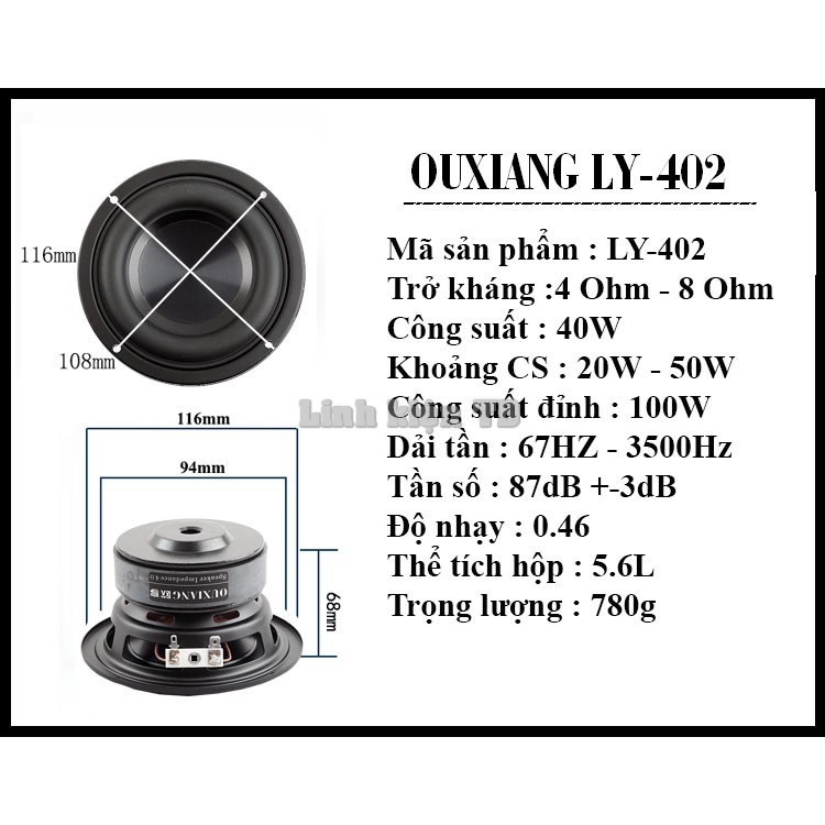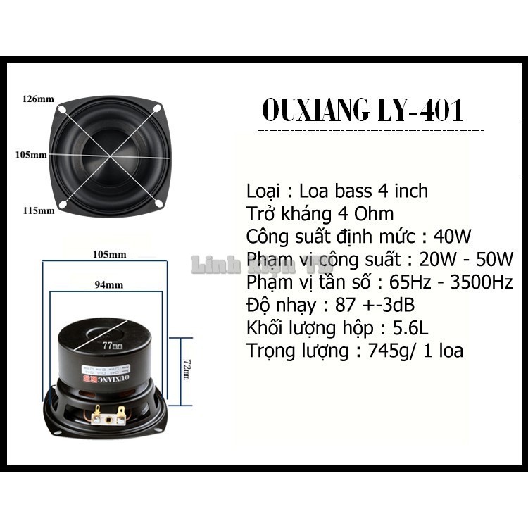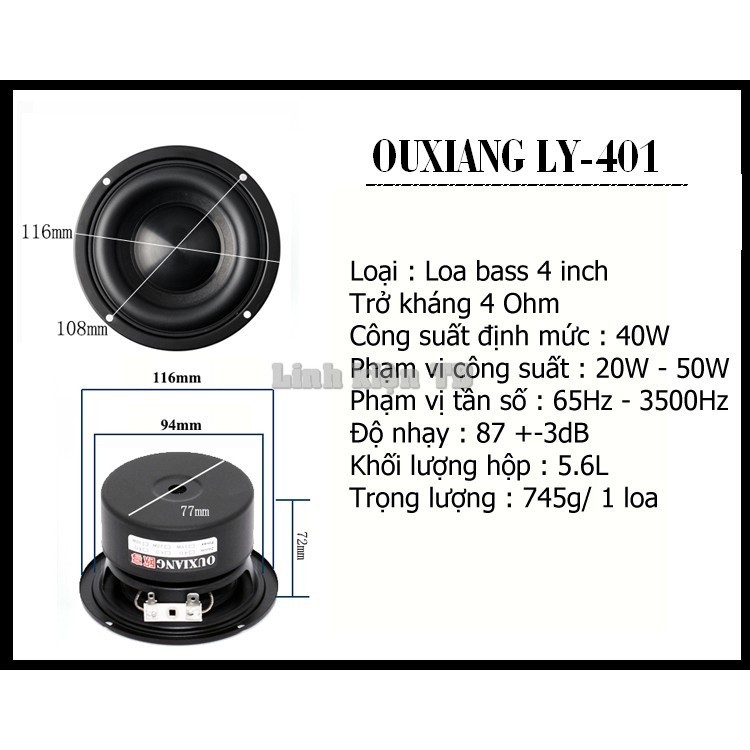 Mã : Ouxiang LY-401Loại : Loa bass 4 inch