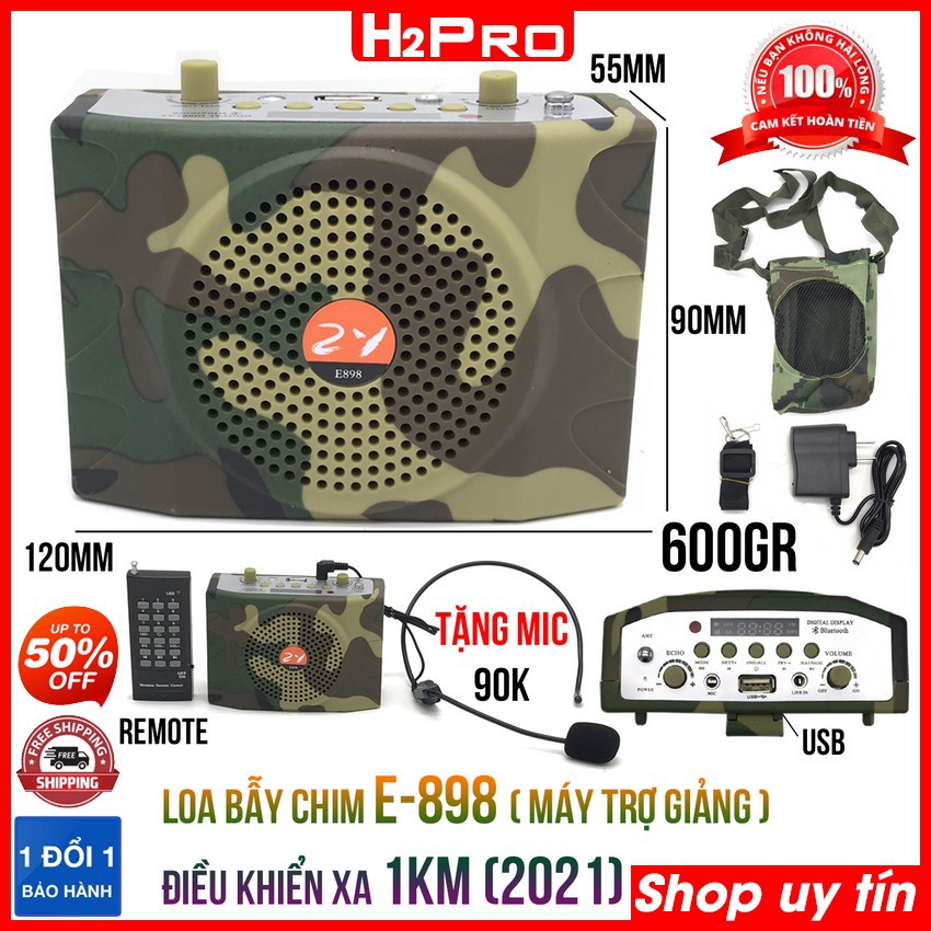Loa bẫy chim E898 2021 H2Pro cao cấp-25W-Bluetooth-Usb-thẻ nhớ-radio-điều khiển từ xa 1km, kiêm máy trợ giảng (tặng mic)