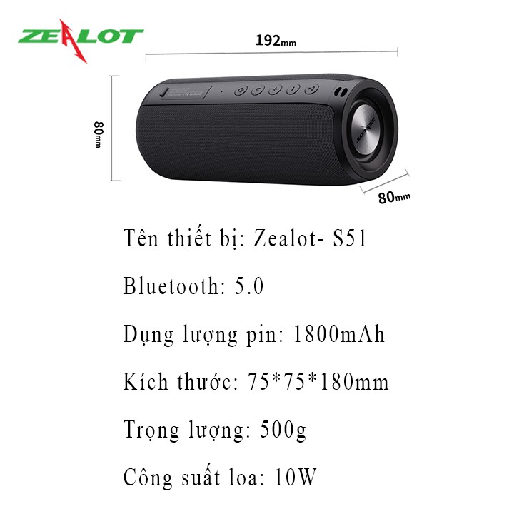 Giới thiệu [Mã ELHACE giảm 4% đơn 300K] Loa Bluethooth Zealot S51 không dây mini di động ngoài trời nghe nhạc siêu êm chính hãng