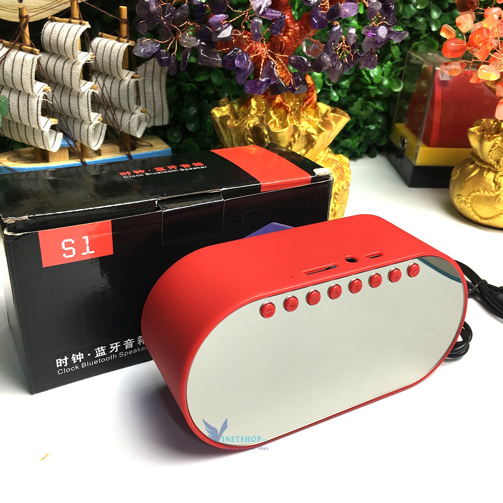 Loa bluetooth 3 trong 1 đồng hồ báo thức, gương, loa âm thanh siêu hay, bass trầm ấm, pin trâu S1 Siêu Chất -DC3846