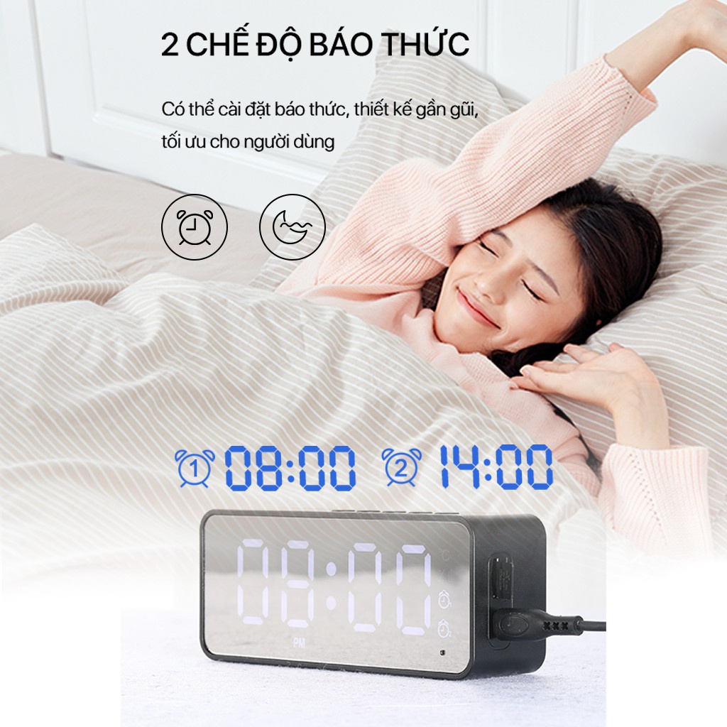 Loa đồng hồ báo thức, kính tráng gương, đèn LED hiển thị