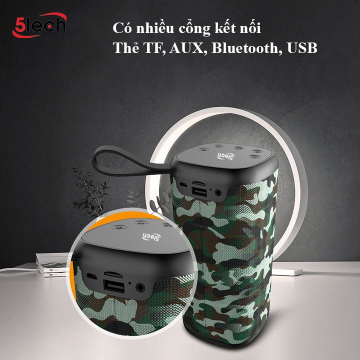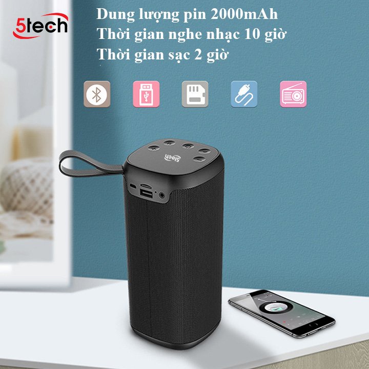 Loa Bluetooth 5.0 Loa Kép Di Động 5Tech, có khe cắm Thẻ nhớ,đài FM cổng USB, Mic và Cáp AUX