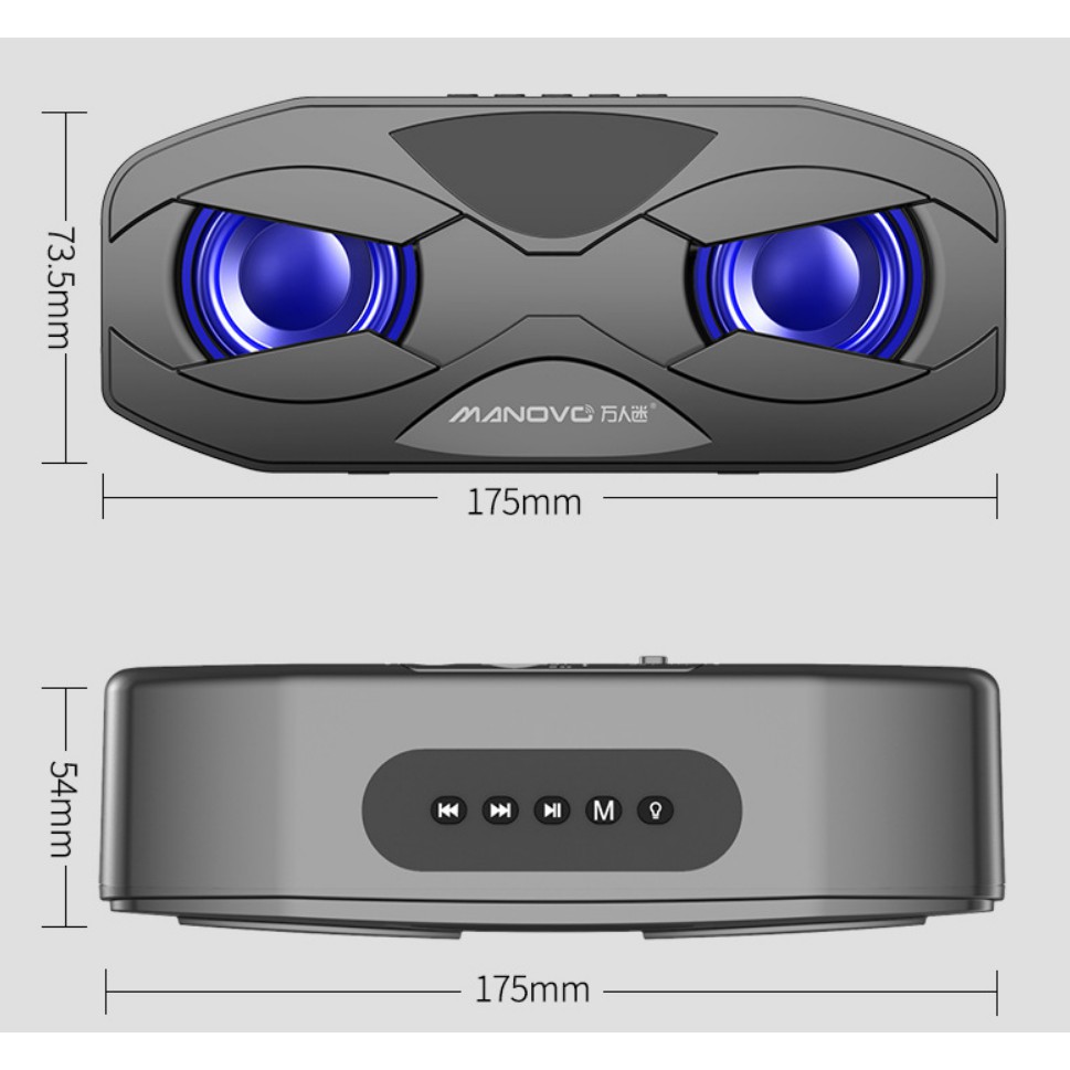 Loa Bluetooth 5.0 MANOVO M4 - Âm thanh vòm 6D, có hỗ trợ thẻ nhớ (Tặng kèm jack cắm)