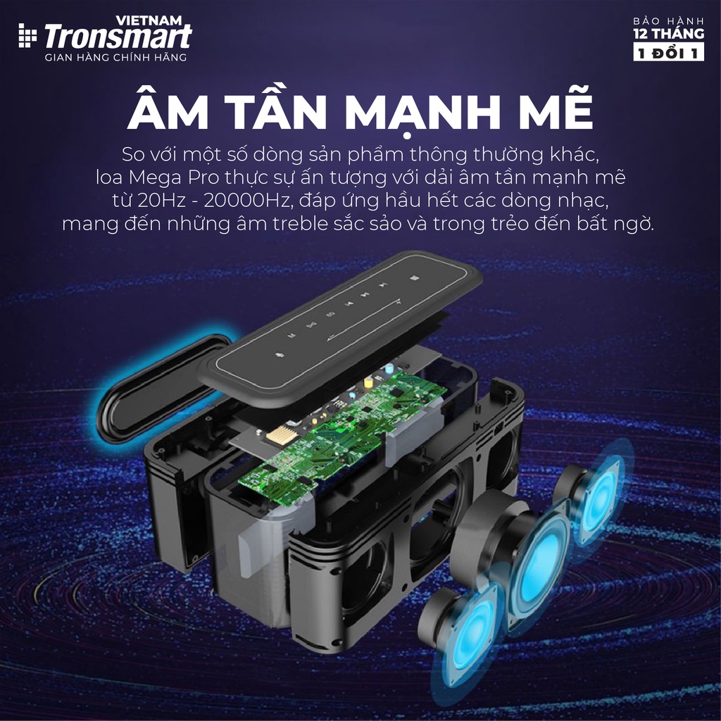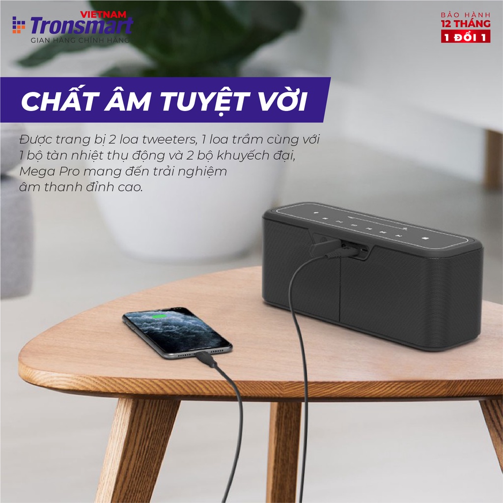 Thiết Bị Âm Thanh > Dàn âm thanh > Loa || Loa Bluetooth 5.0 Tronsmart Element Mega Pro - 60W - Hỗ trợ TWS và NFC ghép đôi 2 loa - Hàng chính hãng - BH 12T 1 đổi 1Còn hàng