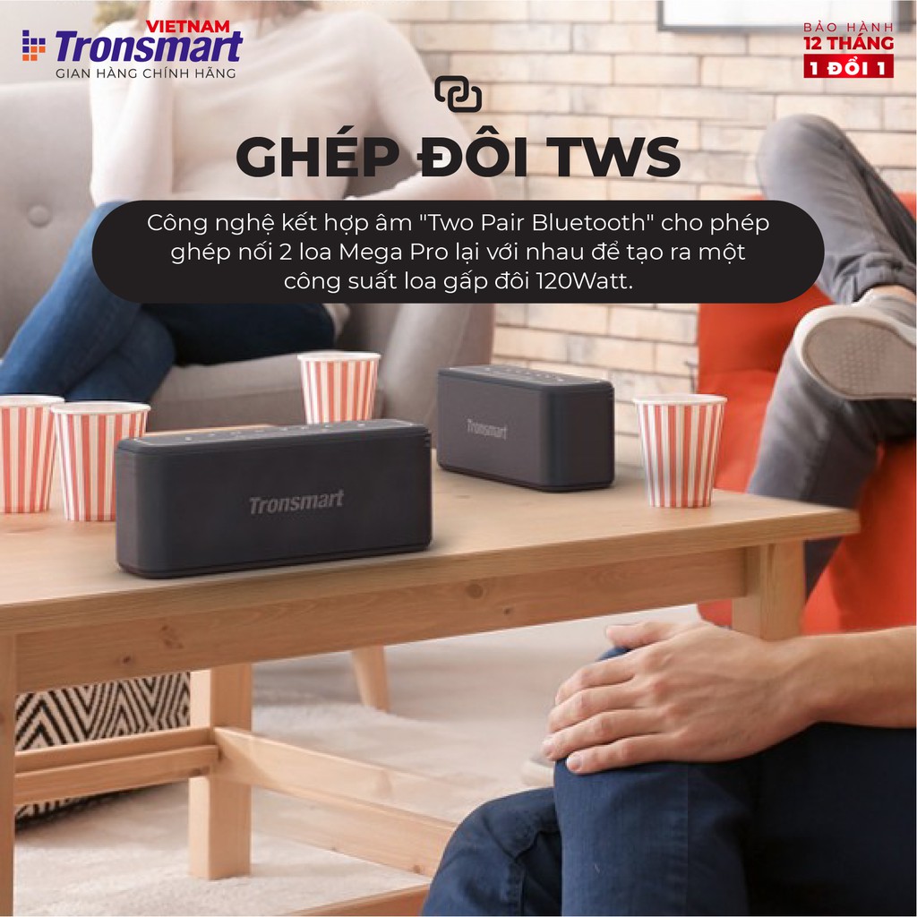 Thiết Bị Âm Thanh > Dàn âm thanh > Loa || Loa Bluetooth 5.0 Tronsmart Element Mega Pro - 60W - Hỗ trợ TWS và NFC ghép đôi 2 loa - Hàng chính hãng - BH 12T 1 đổi 1Còn hàng