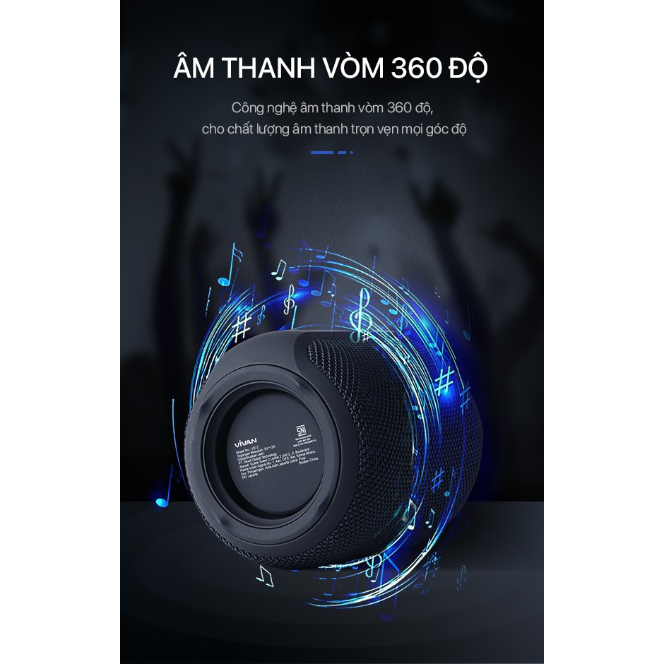 Loa Bluetooth 5.0 VIVAN VS12 Hi-Fi Công Suất 10W Chống Nước Âm Thanh Vòm 360 Độ Hỗ Trợ Kết Nối Cổng AUX Và MicroSD