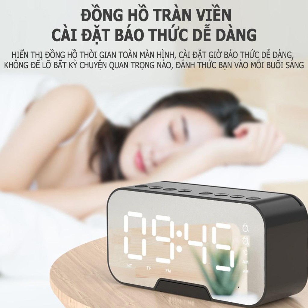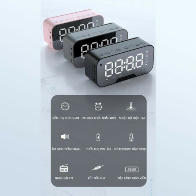 + Âm thanh từ loa to rõ, chắc âm, bass lớn. Khi sở hữu sản phẩm này vừa có một chiếc loa nhỏ gọn, một chiếc đồng hồ hiển thị thời gian, nhiệt độ và cả một chiếc gương để trang điểm.